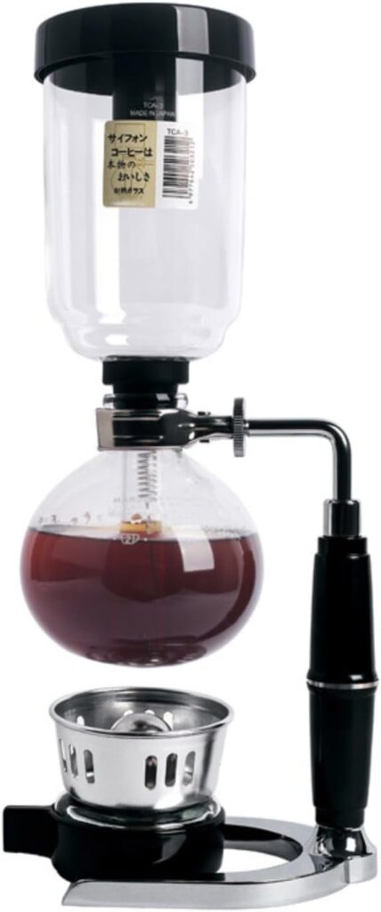 初心者でも手に取りやすい価格で、見た目もクラシック。アルコールランプ式でサイフォンらしい雰囲気が楽しめます。ガラス製の器具が美しく、インテリア性も高め。容量は2~3杯で日常使いにもぴったりです。