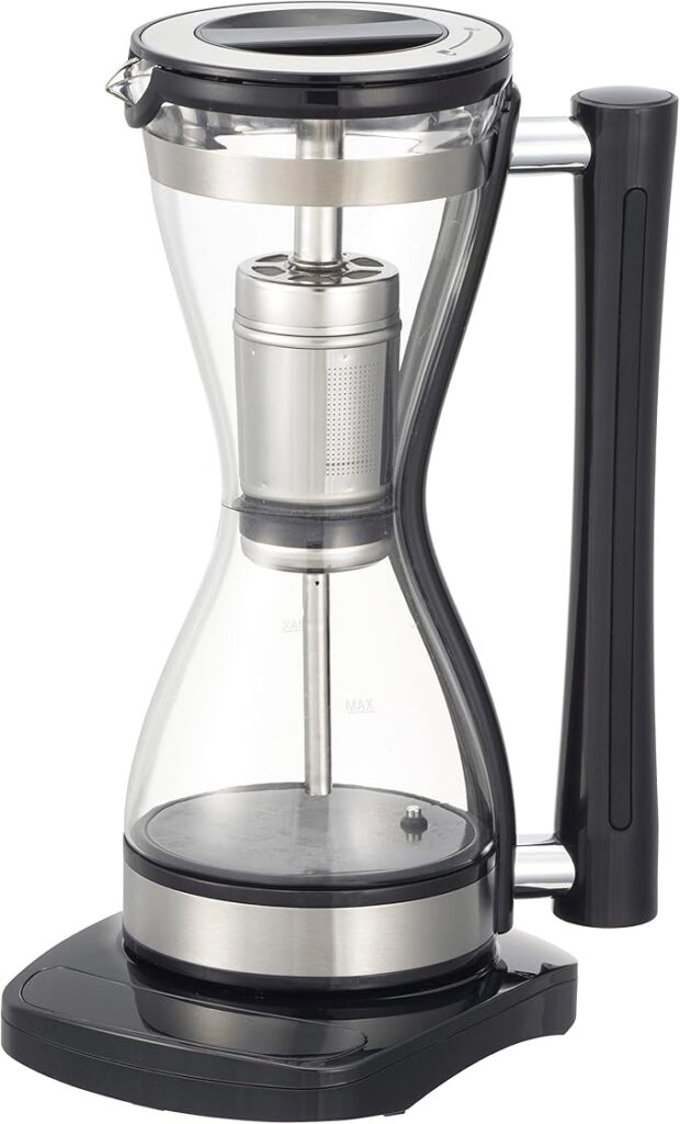 国内ブランド「ツインバード」の電気式モデルで、安心の日本製。容量は約4杯分と多めで、来客時にも対応可能。手動式に近い抽出ながら、火を使わないので操作は安心です。デザインもシックで大人向け。